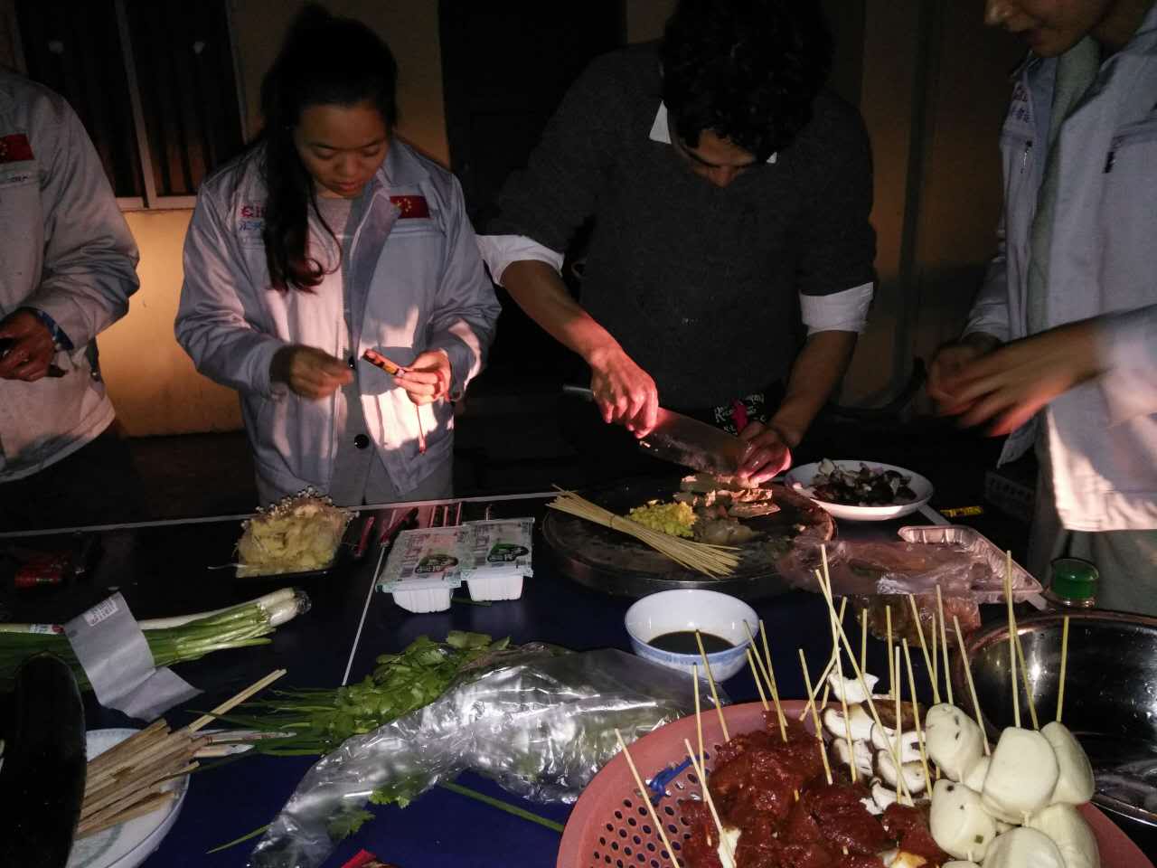 大家默契十足、分工合作,一個(gè)洗菜一個(gè)切菜、一個(gè)燒烤一個(gè)添加調(diào)料