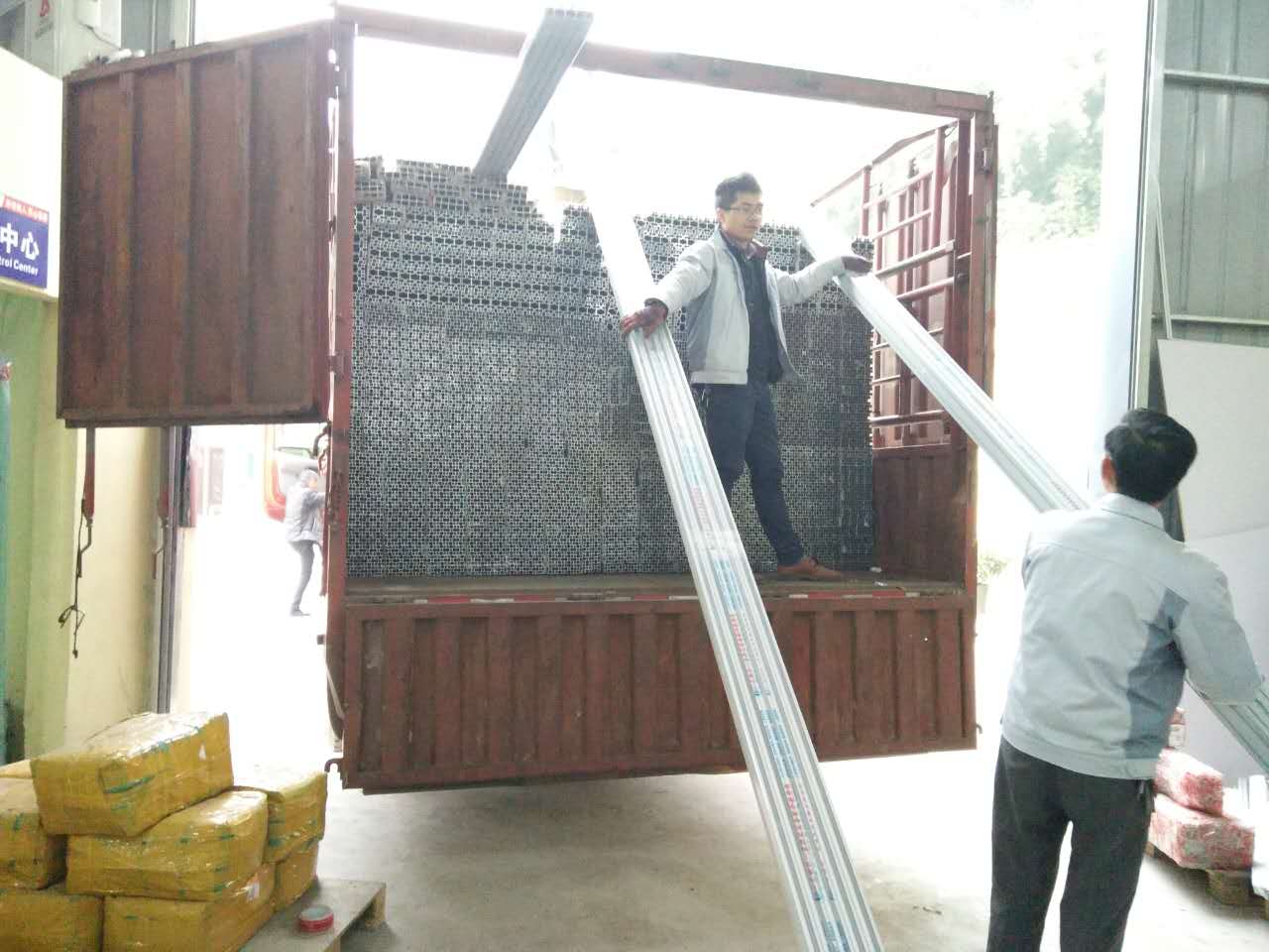 看,這一大堆鋁型材還等待著匯利興戰士們搬卸,在此感謝他們的付出,你們辛苦了!!!