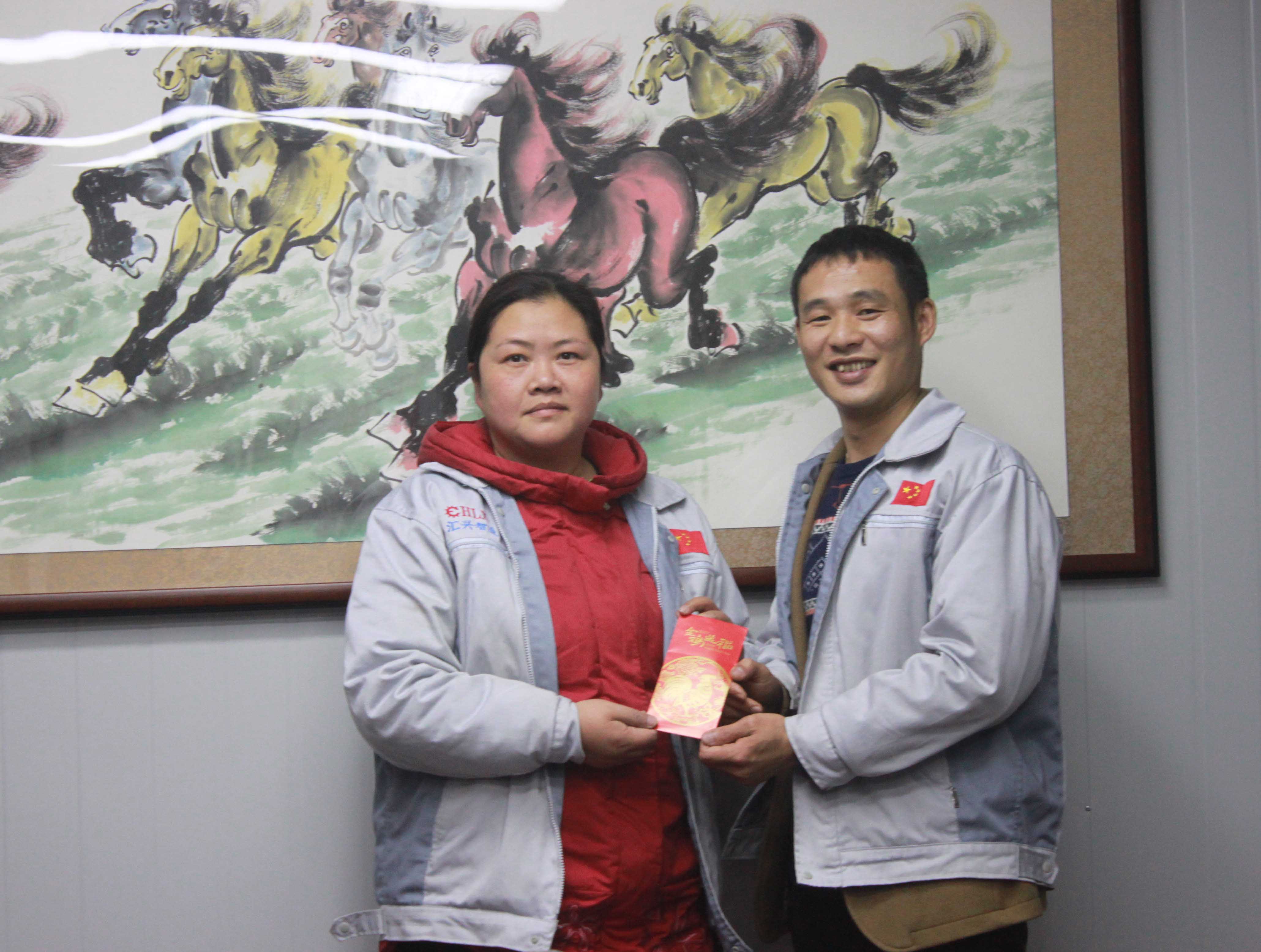 每月度之星評選合影圖(月度之星文靜左與胡總右同框合影)