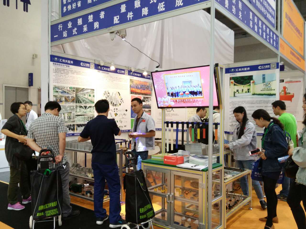 5月25日-5月28日,重慶匯利興主要參展人員:業務經理方向紅、劉文等相關人員。重慶匯利興在本次展會中挑選了300余款其中的70余款鋁材規格,多種規格配件、精益管、流利條及滾筒等型號吸引了數以千計前來觀展的客戶,得到近百家客戶的好評及回贈的名片!現場客人對鋁型材及滾筒、配件的熱衷度頗高,一一咨詢我司人員及相關技術,一致不斷獲得客戶的認可及稱贊。