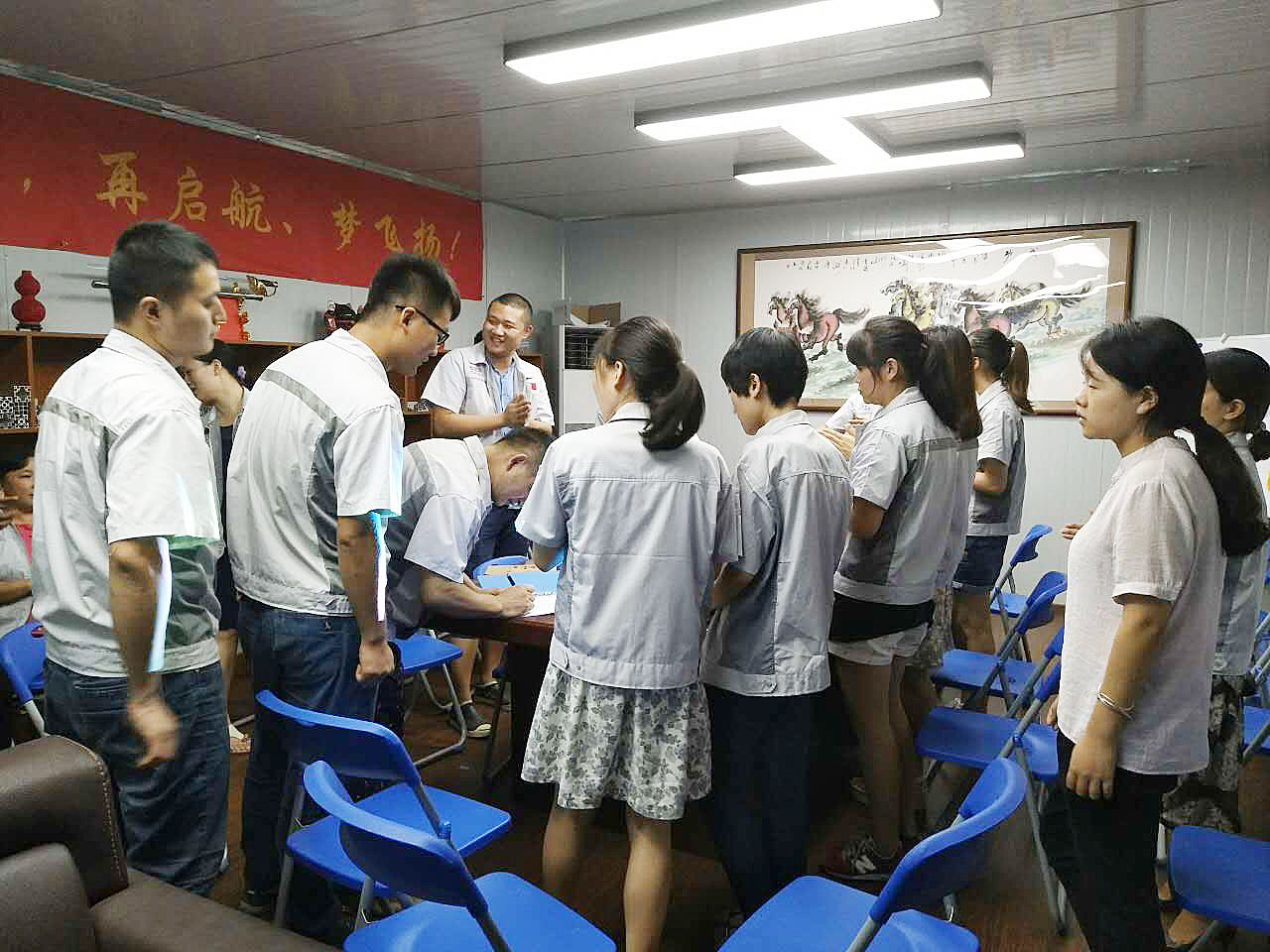 會上,首先大家對新同事的加入表示熱烈的歡迎,其次由張副總為新同事贈送匯利興紀念小禮物;觀看(你想過放棄嗎?)小視頻,面對一切永不放棄、永拼到底的加油精神!然后各部門做簡短自我介紹,不斷認識自己、了解自己了解他人創造一切的不可能,最后會議以每月度之星及月度部門的選舉而落下帷幕。