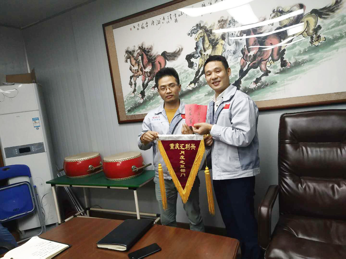 依次估稱簽到入場 會議召開前,大家依次對企業三道(人道、孝道、商道)行三鞠躬,并督促我們應時刻感謝自己、感謝父母及我們的合作伙伴;同時進一步也敲響了匯利興士氣鼓,士氣比武器更重要進而不斷的鼓舞自己鞭策自己,隨后會議正式開始。 敲擊士鼓,士氣比武器更重要 會上,首先由張副總對十月份做相應總結,談到部門之間的配合度及個人對于崗位的付出,并表示隨著時間的增移我們需加快自己的腳步緊追我們的目標;其次每月度之星及部門的選舉和頒發獎金;然后胡總做會議的總結,談到各部門及先進個人的年度總結進而也盼望及希望每個人能更加努力、用心拼搏并在夢想及目標的道路上,一路披荊斬棘、奮勇向前毫不退縮。 張副總發言講話示意圖 如果說,有一種力量可以讓人堅韌不拔,那便是團隊的力量;如果說有一種力量可以讓人心頭一暖,那便是團隊的力量。大家相聚一起互助友愛、努力奮斗,用最貼切的關懷及行動來表達對同事間的關愛和對工作的付出從未求回報,而他們就是此次榮獲月度之星的“張副總”和月度部門“銷售部”。在此感謝他們的奉獻及付出同時在此祝賀他們,進而也希望他們在此后的路程上能更加努力。 雙星代表人“張副總”(圖左)與“胡總”(圖右)進行合影