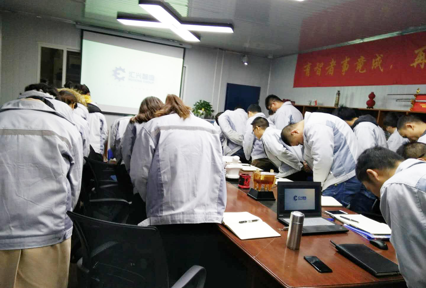 全體人員宣導企業(yè)理念并向企業(yè)三道(人道、孝道、商道)行三鞠躬