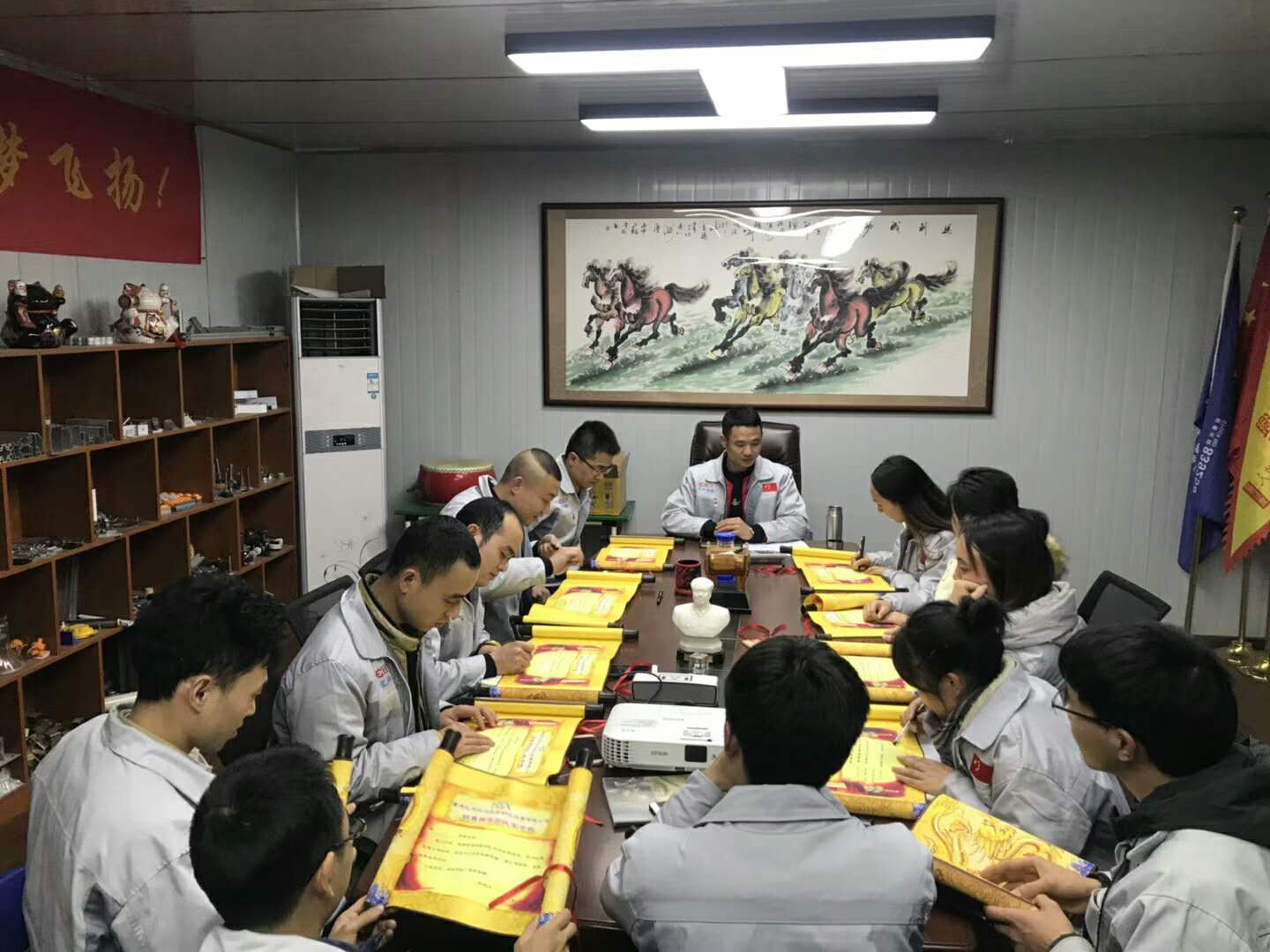 12月25日晚,我司銷售精英們集體在匯利興學(xué)校公開(kāi)立諾“2018年銷售目標(biāo)的訂立”,手持軍令狀提筆立據(jù)、宣誓踐行,斗志昂揚(yáng)一起鎖定新目標(biāo)新挑戰(zhàn)。 在這個(gè)特別的日子,每個(gè)人都帶著莊嚴(yán)的面容并鏗鏘有力的寫(xiě)下每一串?dāng)?shù)字;但寫(xiě)下的這串?dāng)?shù)字此時(shí)此刻卻代表著一份責(zé)任、一份真誠(chéng)、一份承諾更代表著一份力量。因?yàn)檫@是我們必將實(shí)現(xiàn)的目標(biāo)。眾人拾柴,火焰高;天上星多黑夜明,地上樹(shù)多成森林等這些都是匯利興團(tuán)隊(duì)力量的可襯點(diǎn),他們把沖刺作為主旋律,堅(jiān)守著目標(biāo)及夢(mèng)想時(shí)刻奔跑在荊棘的道路上和團(tuán)隊(duì)一起共前進(jìn),在此為他們加油!為他們點(diǎn)贊!為他們鼓舞! 他們用情做人、用心做事,相互配合、互相協(xié)作,形成了一個(gè)極好的團(tuán)隊(duì)氛圍,一起鎖定2018年目標(biāo),為智造崛起貢獻(xiàn)新力量。