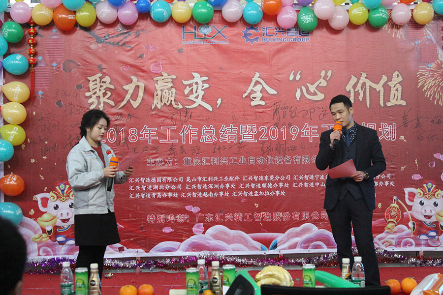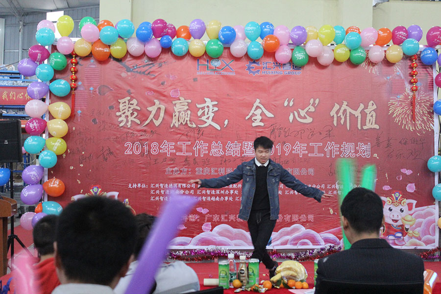 會議召開前,全體匯興人整肅衣冠宣讀企業(yè)文化,對倍加推崇的三道文化“人道、孝道、商道”行三鞠躬,擊士氣鼓。 會上,胡總作2018年工作總結(jié)暨2019年工作計劃。談到2019年每個人都應(yīng)具備“三心兩力(耐心、信心、決心、執(zhí)行力、戰(zhàn)斗力)”的特質(zhì),團結(jié)一致、為了夢想勇往直前同時也感謝大家在2018年的付出與努力,并指出2018年各部門所存在的短板,進而勉勵家人們在新的一年里吐故納新、再創(chuàng)佳績。 隨著一聲“開門紅”,2018年匯利興(重慶)公司年終大會就正式拉開序幕,同時也點燃了2019年的鴻運和希望。