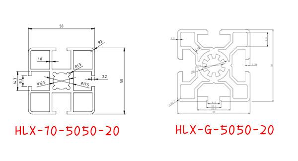 大家可以從上面兩個圖紙可以觀察出,兩款型材的不同之處,第一款為歐標50502.0,第二款為國標50502.0,其分別的重量為2.417KG/M 1.828KG/m,因此大家可根據小編給出的參數進而推斷國標5050-2.0的承重力度,應該控制的范圍,不要超出本身型材的實際重量。