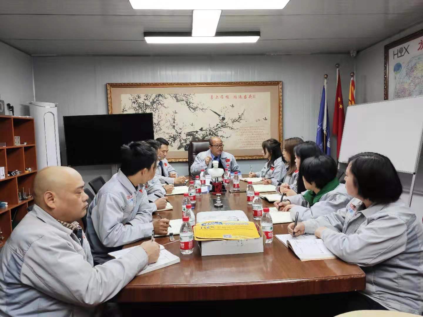 12月9日,公司董事長鐘輝先生蒞臨重慶子公司考察并指導工作,于16點40分在會議室召開主管會議。 會議前,例行匯利興企業文化,兩位核心高管敲響士氣鼓,士氣比武器更重要。