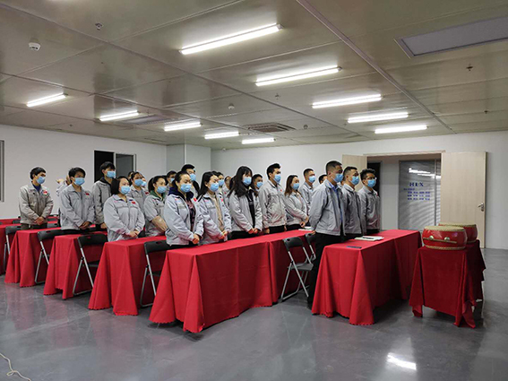 會議第一項議程,企業文化的展示。全體匯興人整肅衣冠對匯興人倍加推崇的“三道文化”(孝道、商道、人道)鄭重地鞠躬,莊嚴宣誓企業愿景:“成為全球領先的智能自動化產業鏈集成服務商”,企業使命:做受尊敬的好人,造受尊敬的產品,辦受尊敬的企業,建受尊敬的平臺,企業精神“用情做人、用心做事”,團隊精神“忠誠團結、勤奮進取”,工匠精神:創于手、精于工、智于器、匠于心、品于行等。隨后由胡總經理和張副總擊士氣鼓,士氣比武器更重要,現場氣氛熱烈、振奮人心。 會議第二項議程,新員工入職歡迎儀式。由常務副總徐總親自為新入職員工頒發紀念品。為公司注入新鮮血液,為團隊帶來新的生機和活力。