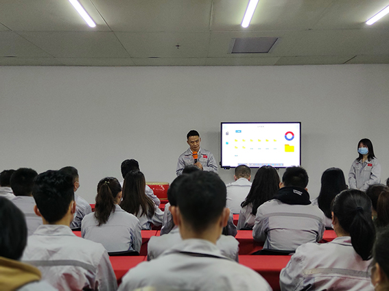 會議第三項議程,季度之星嘉獎儀式。本季度之星“工程部王顯章和物控部陳曉敏”,他們用一言一行在各自的工作崗位上做著表率;他們不辭辛苦,積極向上,工作出色,深得大家的認可,同時也感謝他們的奉獻與堅持。也正因為有這么一批堅持奉獻、恪盡職守、團結奮進的匯興人,才得以讓匯利興這個大家庭一直散發著正能量,引領行業市場。 會議第四季度,胡偉路總經理作2020年第一季度總結及未來目標展望。胡總經理首先指出第一季度工作中存在的不足,進而勉勵全體員工“一切行動聽指揮,步調一致才能取得最終勝利”;其二,談到疫情當下,企業也不容易,請全體員工努力工作、珍惜工作并且不要輕易放棄,永葆積極向上之心;其三,受疫情影響,所帶來的經濟危機,要求全員具備強烈的危機意識和逆勢而上的思維;其四,未來匯利興將打造“會干、愿意干、搶著干的精英團隊”及年度優秀團隊及個人嘉獎模式;其五,匯利興一站式商城將為實現標準化、定制化、個性化、高端化的配件品牌而努力前行。最后,胡總勉勵大家“每個人都是公司前進的助推劑,不是公司的絆腳石”,希望全員擰成一股繩,一路向前、努力奮進,順利完成年度目標。