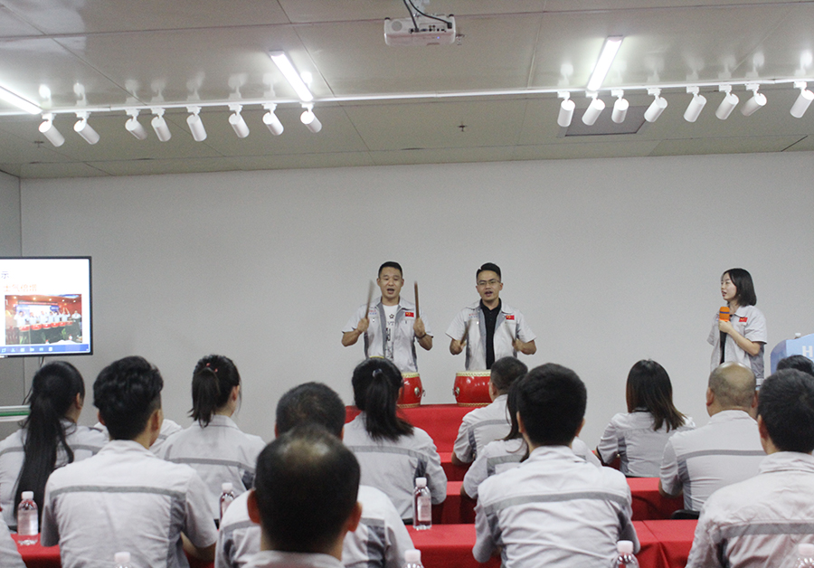 ? 2020年8月29日14點30分,匯利興西南工廠全體員工在匯利興學校召開7月月度會議,總結月度工作經驗,剖析上半年度工作中存在的不足,并為下半年的工作做統籌計劃。由事務中心主管陳香草主持。 ? 會議前,由兩位團建總指揮擊士氣鼓-士氣比武器更重要,現場鼓聲震天,振奮人心.