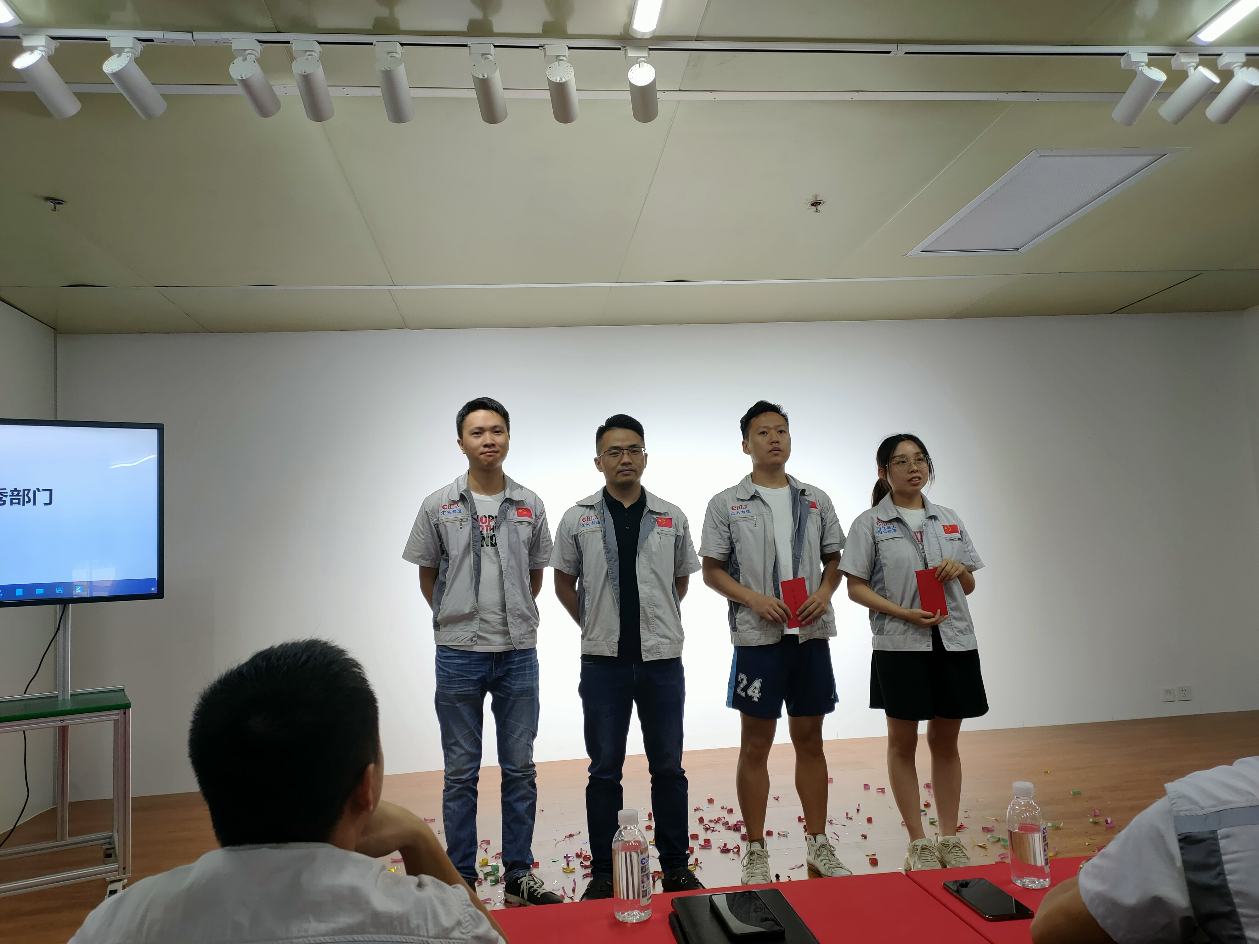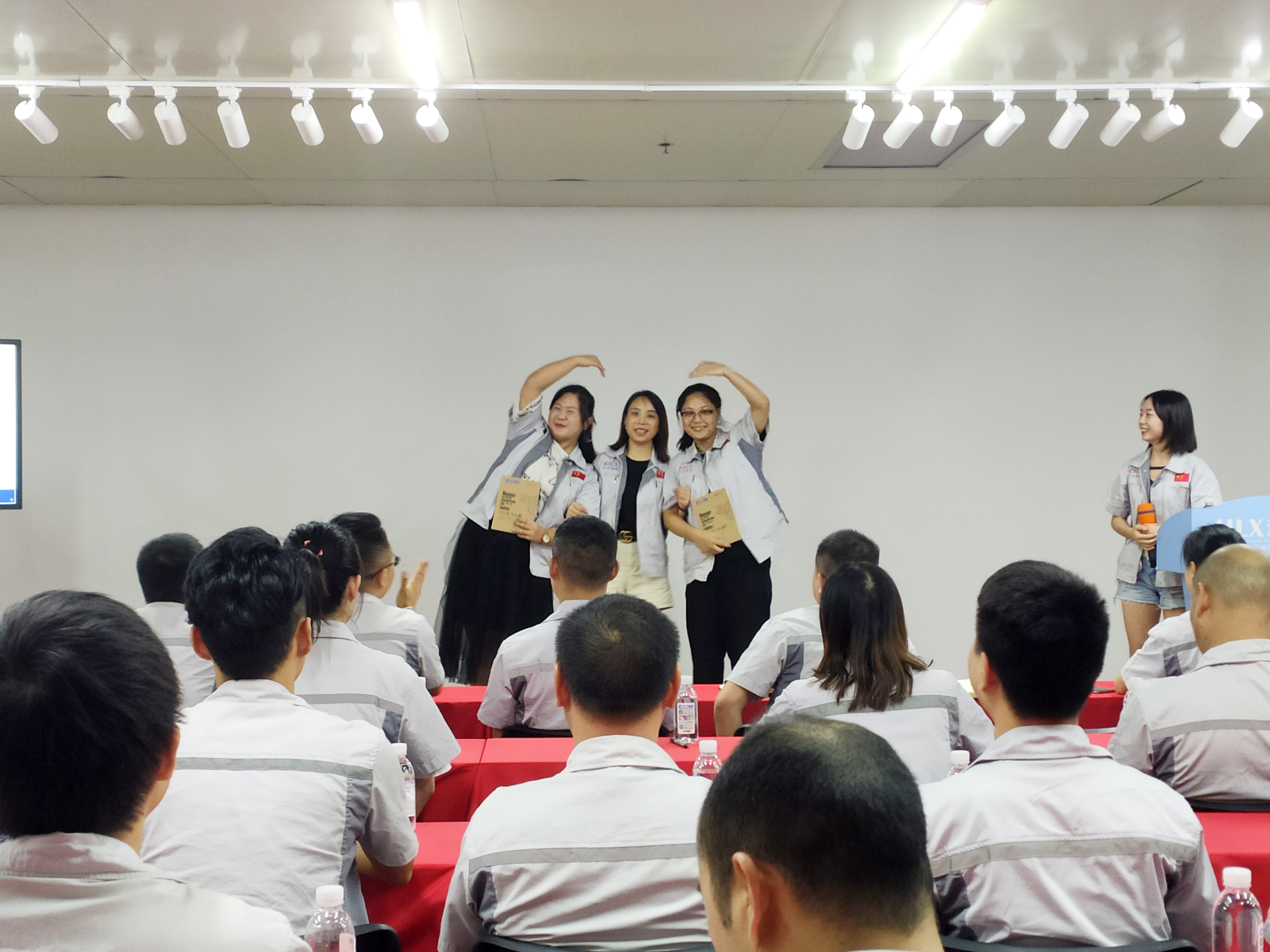? ? ? 其次,全體員工整肅衣冠,對倍加推崇的孝道、商道、人道鄭重鞠躬,莊嚴宣誓企業愿景:“成為全球領先的智能自動化產業鏈集成服務商”,企業使命:做受尊敬的好人,造受尊敬的產品,辦受尊敬的企業,建受尊敬的平臺,企業精神“用情做人、用心做事”,團隊精神“忠誠團結、勤奮進取”,工匠精神:創于手、精于工、智于器、匠于心、品于行等。? 會議第一項,新員工入職歡迎儀式。由客服部經理石樂歡為新入員工頒發紀念品,希望她們在各自的崗位上積極向上,盡職盡責,并為公司的發展貢獻一份力量。