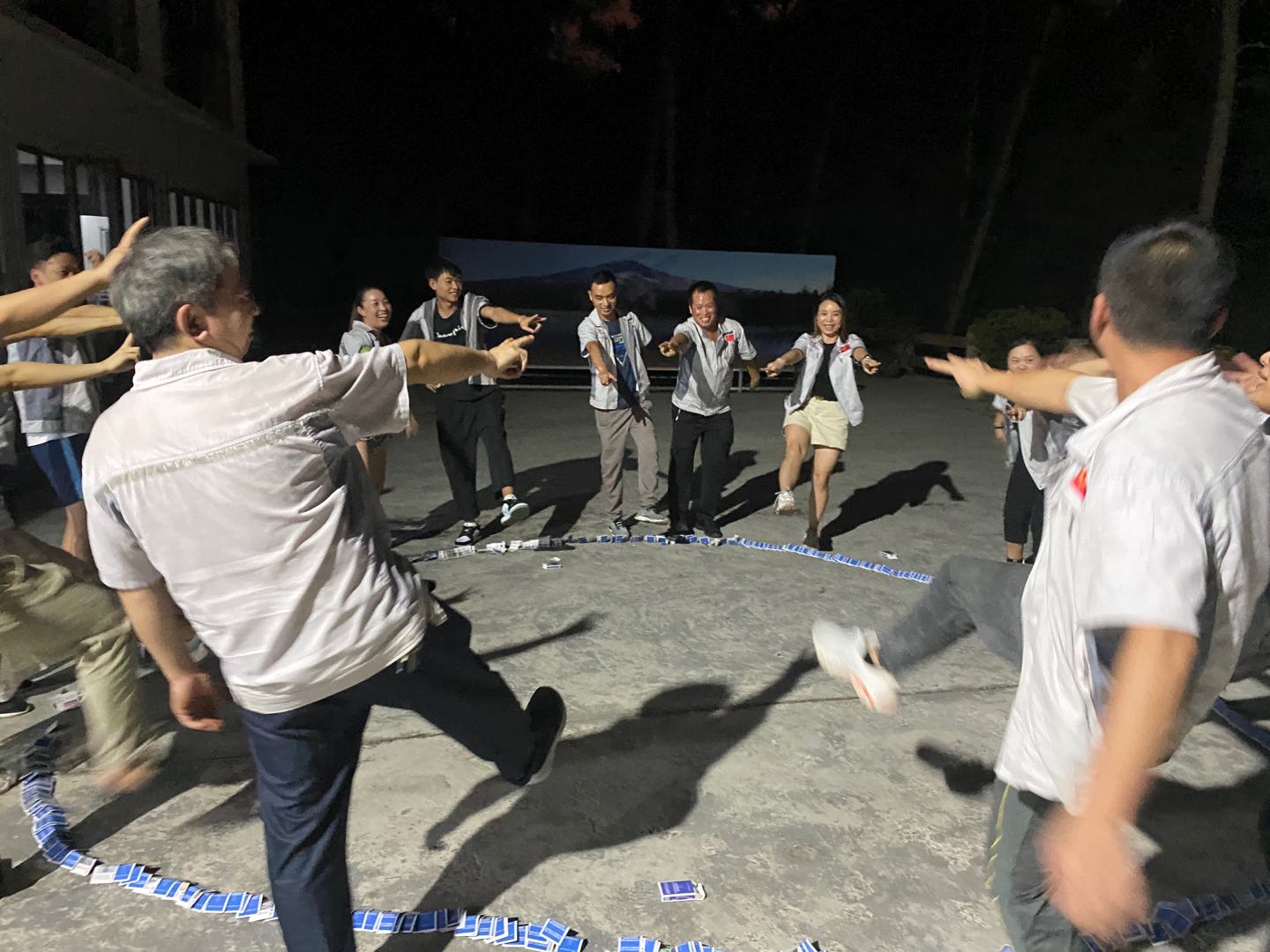 ? 第二輪游戲-疊撲克牌,通過游戲來考驗隊長的指揮能力及隊員的堅持、溝通能力。20盒撲克牌分別由AB兩隊,在規定的時間疊成一個圓,看誰速度更快。倒了再疊、疊了再倒.....堅持不放棄的畫面在當晚的時刻里出現無數次,一次次相互加油、鼓勁的吶喊聲印刻在每位成員的腦海中,相信通過這次游戲的鍛煉大家在今后的日常工作中也會更加主動積極完成任務同時也更加具有堅韌力;最后在兩隊激烈的比拼下,B組團隊順利取勝。同時游戲輸掉的一方A組,也將面臨嚴格的懲罰,一起品嘗人生象牙塔-酸、甜、苦、辣、咸。