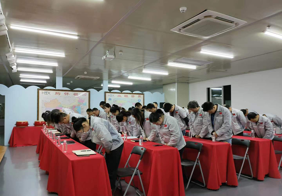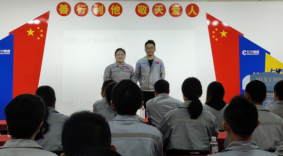 2020年10月17日13點45分,匯利興西南工廠全體員工在匯利興學(xué)校召開9月月度會議,由事務(wù)中心主管陳香草主持。 隨后二位女精英擊響士氣鼓,鼓舞士氣,鼓舞著戰(zhàn)友們奮勇前進(jìn),并以這種以評促進(jìn)、你追我趕的“激勵文化”,潛移默化融于員工的日常工作中,同時也鞭策著員工們不斷爭先創(chuàng)優(yōu),推動企業(yè)發(fā)展的內(nèi)生動力,從而形成“我來干、搶著干、努力干”的工作作風(fēng)。現(xiàn)場鼓聲震天,士氣如虹。 會議第一項議程,企業(yè)文化展示。全體匯興人整肅衣冠對匯興人倍加推崇的“三道文化”(孝道、商道、人道)鄭重地鞠躬,莊嚴(yán)宣誓企業(yè)愿景:“成為行業(yè)優(yōu)秀的智能自動化產(chǎn)業(yè)鏈集成服務(wù)商”,企業(yè)使命:做受尊敬的好人,造受尊敬的產(chǎn)品,辦受尊敬的企業(yè),建受尊敬的平臺,企業(yè)精神“用情做人、用心做事”,團隊精神“忠誠團結(jié)、勤奮進(jìn)取”,工匠精神:創(chuàng)于手、精于工、智于器、匠于心、品于行,行為準(zhǔn)則:口中有德、目中有人、手中有技、心中有愛、行中有善,職業(yè)準(zhǔn)則:對工作熱臉、對同事笑臉、對錯誤紅臉、對浪費黑臉、對榮譽爭臉。