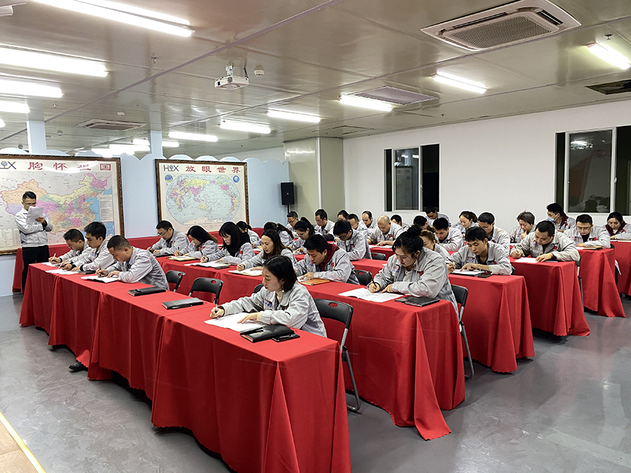 通過現場考試的模式,來強化每位員工對企業文化的熟知度及日常考勤的認知度,使每一項企業文化都能深入骨髓,使每一項制度都能牢記于心,并潛移默化影響著每一位員工,促使全體員工在完成每項工作的同時都能提前有計劃、有制度的去實行。 會上,胡總經理談到:匯利興西南工廠自創始來,在董事長鐘輝的精神指引下,匯利興西南工廠在團隊建設、文化建設、實力建設上都取得一定的成績,但深知任重道遠,離我們的夢想相差甚遠,我們必須要在毫不松懈的情況下,繼續擼起袖子加油干,朝著我們的夢想不斷前進,力爭成為行業優秀的智能自動化產業鏈集成服務商。積分制度的推行,其主要還是以目標為主,以動力為輔,快速推動企業穩步向前發展,讓全體員工自上而下形成一股“我來干、努力干、好好干”的良好氛圍。各主要分管領導要狠抓經營目標的落實,自動自發在內心植入“我會干、知道干、往哪干”的主人翁意識,真正保證公司生態鏈自動健康運轉,促使每個員工奮力奔跑,實現員工個人價值最大化,福利最大化;并進一步表示:“前進擋就像汽車排擋”,全體員工要深刻反思自己目前處于什么檔位,是否屬于前進擋中的一個檔位,是否遵從公司的每個指令,助力公司前進;同時勉勵全體員工要拿出眾人拾柴的心勁兒、逢山開路的闖勁兒、甩開膀子的干勁兒、勇毅篤行的穩勁兒,堅定同一個方向,朝著同一個目標前進,相信我們的目標一定能夠完成。