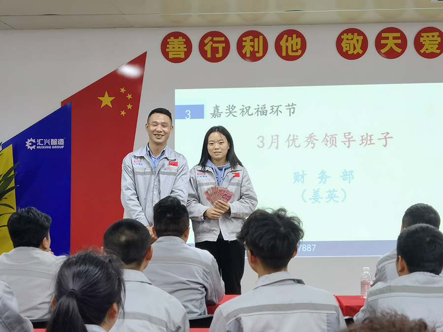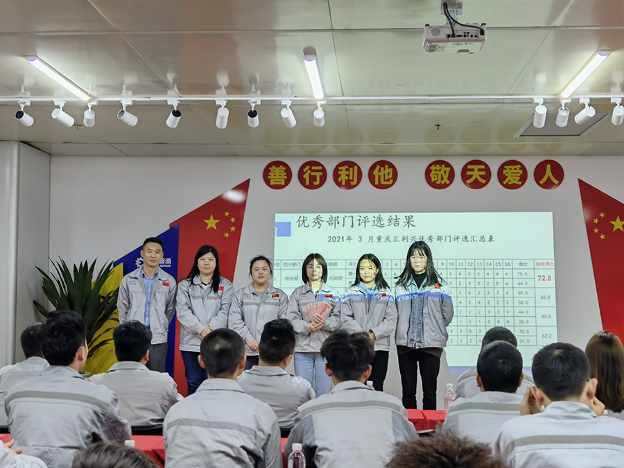 業精于勤,荒于嬉,行成于思,毀于隨。總結上個月工作情況,統籌下一個月工作計劃。匯利興西南工廠于4月9日18點40分,在匯利興學校召開三月月度會議。銷售主管劉文主持,匯利興西南工廠全體職員參會。會議開始,兩位高管敲響士氣鼓,敲響我們出征的號角,前進的戰鼓,鼓舞著每位員工沖鋒打勝仗的決心和毅力。全體員工向企業三道孝道、商道、人道鄭重鞠躬,宣讀企業文化,并對本月新入員工進行歡迎儀式。 春天是播種的季節,同時也是催人奮進的季節。為了表彰在三月份表現突出的優秀個人、優秀主管、優秀部門,充分發揮引領示范作用,最大限度調動和激發員工向優秀人員看齊、不斷提高工作的積極性和創造性。本次榮獲優秀員工(曾濤、邵靜、鄧筵暉)、優秀主管(姜英)、優秀部門(綜合部)。自成立以來,公司大力宣導我來干、努力干、拼命干的工作作風,積極鼓勵無私奉獻、恪盡職守的三好匯興人,并堅持打造一支有愛、有力量、有活力的團隊。
