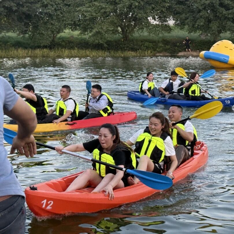 水上環節更是將團隊協作推向高潮。身著救生衣的伙伴們并肩執槳,船槳入水的角度要精準同步,發力的時機需默契呼應。當船身偏離方向時,有人及時調整節奏,有人高聲校準方位,水波蕩漾間不僅拉近了物理距離,更讓心與心在協作中緊密相連。歡笑聲里藏著包容,加油聲中透著擔當,每一次成功的配合都讓團隊信念更加堅定。 這些充滿挑戰與歡樂的互動,讓抽象的 “團隊精神” 變得可觸可感。它是彎腰托舉時的堅實力量,是方向偏差時的及時補位,是沖刺終點時的攜手同行。彼此扶持的身影印刻成團隊的勛章,共同沖刺的腳步奏響協作的樂章。在汗水與歡笑的交織中,團隊向心力不斷升溫,凝聚成最堅韌的精神紐帶,為未來的并肩作戰注入無盡能量。