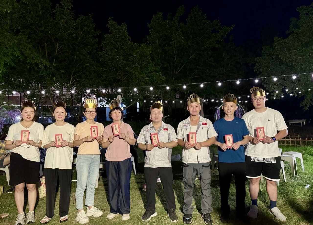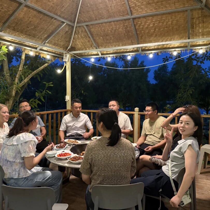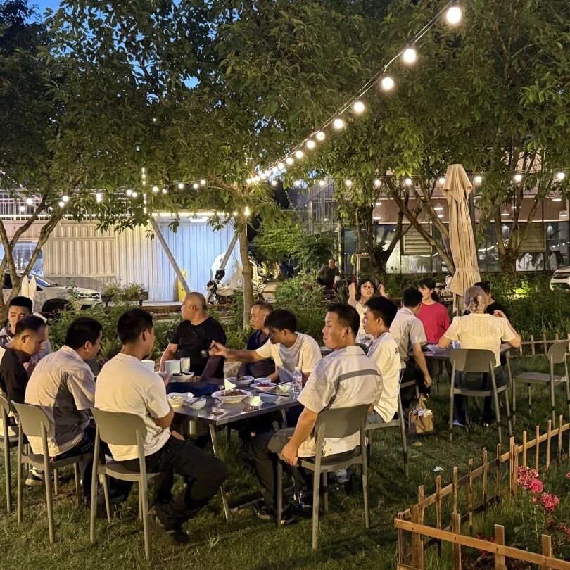 暮色初合時,戶外場地華燈初上,溫馨氛圍拉滿。席間流轉的笑語里,有項目攻堅后的如釋重負,更有朝夕相伴的默契升溫。管理者舉杯時的真摯祝辭,將 "感恩同行" 的情愫與 "聚力共進" 的期許融入杯盞醇香;壽星閉眼許愿的瞬間,全場輕唱的生日歌讓集體溫暖具象成觸手可及的幸福。燭光下交疊的歡笑剪影,餐盤間傳遞的貼心關懷,讓每個細節都在訴說:這里不僅是奮斗的職場,更是溫暖的家園。